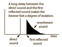 Quantitative studies indicate that the first reflected sound should arrive within about 30 msec of the direct sound, and that time lags of 50 msec or more draw negative reactions from listeners.
