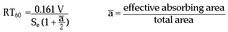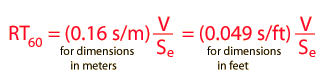 Modeling Reverberation TimeSabine is credited with modeling the reverberation time with the simple relationship which is called the Sabine formula: ![]() where V is the volume of the enclosure and ![]() and a is the absorption coefficient associated with a given area S.