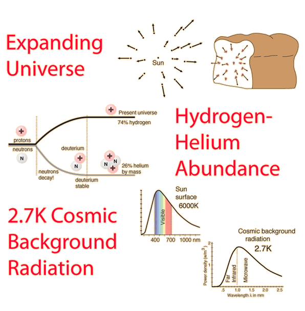 Physical Keys to CosmologyOnly in the latter half of the 20th Century was enough physical evidence accumulated to make reasonable models of the formation process of the universe. The present standard model, the "big bang" model, was developed around three major pieces of experimental evidence: