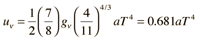 where gν = 6 for the 3 neutrinos plus their antiparticles, and the multiple 7/8 comes from the fact that they are fermions rather than bosons. Each of the 6 species has only one spin state.
