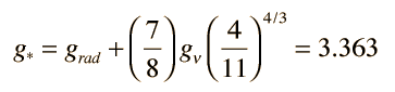 where the photon "g-factor" is grad = 2 is the number of effective degrees of freedom associated with a photon: it's polarization can be parallel or anti-parallel to its motion. This notation facilitates its combination with neutrino energy density in describing the contribution of relativistic particles to the universe's energy density.