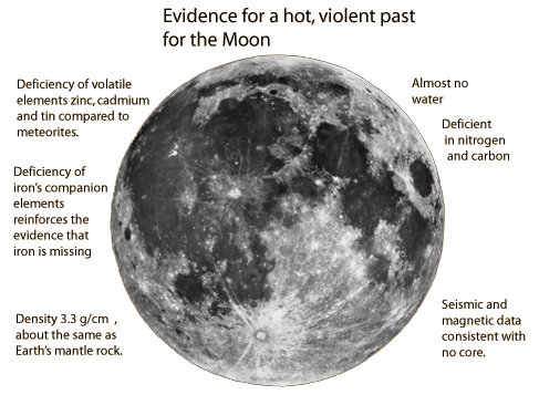 By the time the Moon samples and extensive data from the Apollo program were analyzed, it was clear that the Moon had a hot, violent origin which left it without significant iron content. The process of modeling the process could begin.