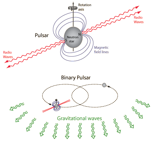 A pulsar is a rotating neutron star that produces periodic signals in Earth detectors as its beam of radiation sweeps over Earth once per rotation. A binary pulsar may have the additional feature of a measurable decrease in the orbital period as the two pulsars spiral inward toward each other. This change in the orbital period can be attributed to energy loss due to the emission of gravity waves, and the rate of energy loss can be calculated from Einstein's general relativity. Therefore the measurement of the rate of change of the orbital period provides a test of general relativity.