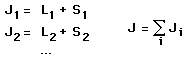 Russell-Saunders or L-S CouplingFor multi-electron atoms where the spin-orbit coupling is weak, it can be presumed that the orbital angular momenta of the individual electrons add to form a resultant orbital angular momentum L. Likewise, the individual spin angular momenta are presumed to couple to produce a resultant spin angular momentum S. Then L and S combine to form the total angular momentum" This kind of combination is visualized in terms of a vector model of angular momentum.