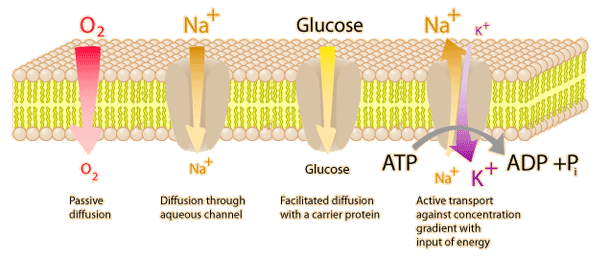 Transport Across Cell MembranesEssential and continuous parts of the life of a cell are the taking in of nutrients and the expelling of wastes. All of these must pass through the cell membrane. Transport may occur by diffusion and osmosis across the membrane. It can also occur when a vescicle attaches to the cell membrane from the inside and then opens to form a pocket, expelling its contents to the outside. This may be called exocytosis. The cell membrane may also envelope something on the outside and surround it, taking it into the cell. This may be called endocytosis or phagocytosis. There are also examples where molecules move across a membrane from a region of low concentration to an region of high concentration, and this requires a source of energy to "pump" the molecules uphill in concentration. Such processes are called active transport. ![]() |