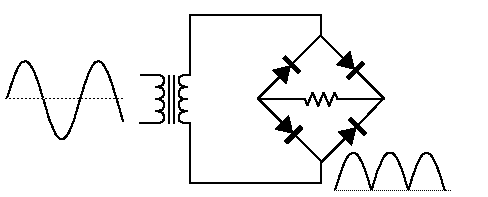 A bridge rectifier makes use of four diodes in a bridge arrangement to achieve full-wave rectification. This is a widely used configuration, both with individual diodes wired as shown and with single component bridges where the diode bridge is wired internally.