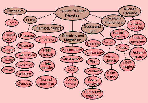 There are many applications of the principles of physics to physiology, health and the practice of medicine. You may click on one of the specific applications above, or choose one of the more general headings for a more detailed guide to health related applications.