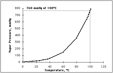 Below are some selected values of temperature and the saturated vapor pressures required to place the boiling point at those temperatures. The pressures are stated in mega-Pascals, where a Pascal is a Newton per square meter, and as a multiple of standard atmospheric pressure.