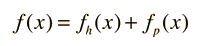 The path to a general solution involves finding a solution fh(x) to the homogeneous equation, and then finding a particular solution fp(x) to the non-homogeneous equation (i.e., find any solution that satisfies the equation with all terms included). The form of the general solution is