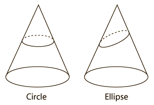 The ellipse may be seen to be a conic section, a curve obtained by slicing a circular cone. A slice perpendicular to the axis gives the special case of a circle.