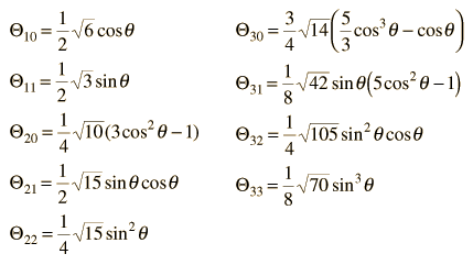 and appear in the wavefunctions for the hydrogen atom. The first few normalized associated Legendre functions are listed below.