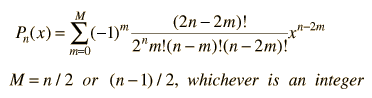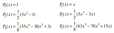 The polynomials may be denoted by Pn(x) , called the Legendre polynomial of order n. The polynomials are either even or odd functions of x for even or odd orders n. The first few polynomials are shown below.