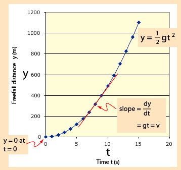 A plot of the logarithm of the freefall distance as a function of the logarithm of time yields a straight line of slope 2. The slope of a log-log plot gives the power of the relationship, and a straight line is an indication that a definite power relationship exists.