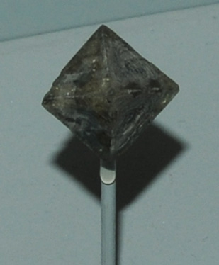 This sample of northupite is displayed in the Smithsonian Museum of Natural History. Northupite is a carbonate mineral of sodium and magnesium that contains chlorine. It has the composition Na3Mg(CO3)2Cl. The sample at left is about 1.5 cm across.