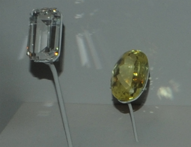 These samples of amblygonite are displayed in the Smithsonian Museum of Natural History. Amblygonite is a phosphate mineral which is a minor source of lithium . It has the composition (Li, Na)AlPO4(F,OH). This sample is about 10 x 20 cm and is from Lavra da Ilha, Taquaral, Minas Gerais, Brazil.