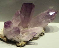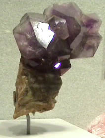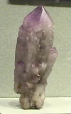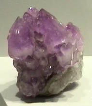 This amehtyst sample shows the form known as scepter crystals. It is from Hopkinton, Rhode Island. The size is about 30 cm across.