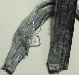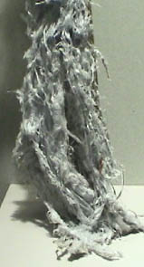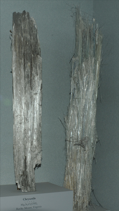 The left sample above is a 10x50 cm vertical column from Rocky Mount,Virginia. The right sample is a loose 10 x 60 cm bundle of fibers from Canadian Johns Mansville mine, Quebec, Canada.