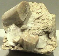 Chrysotile is another fibrous mineral, one of those which were given the commercial name asbestos. The sample at left is like a dense mat of vertical fibers. It is about 15x6 cm and is from Arizona. Chrysotile has the composition Mg3Si2O5(OH)4.
