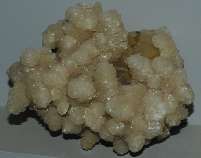This sample of Benstonite is displayed in the Smithsonian Museum of Natural History. Benstonite is a carbonate mineral which contains barium, magnesium, calcium, manganese and strontium with the general composition (Ba,Sr)6(Ca,Mn)6Mg(CO3)13. This sample is about 8x8 cm and originated in Hardin County, Illinois.