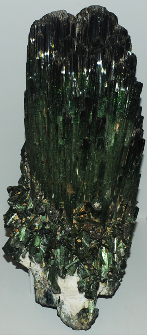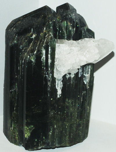 The column of elbaite at left is about 6 cm in diameter. Above, the green column is about 8-10cm in diameter and is from Minas Gerais, Brazil. It is elbaite with quartz.