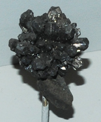 This sample of gratonite is displayed in the Smithsonian Museum of Natural History. Gratonite is a sulfide mineral of lead and arsenic with the composition Pb9As4S15 . The sample at left is about 3x5 cm and is from Cerro de Pasco, Junin, Peru.