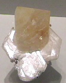 Powellite has the composition CaMoO4, so it is classified as an oxide mineral. This sample of powellite is on a base of stibnite. The element calcium is reasonably abundant, so the presence of molybdenum in this mineral is significant.