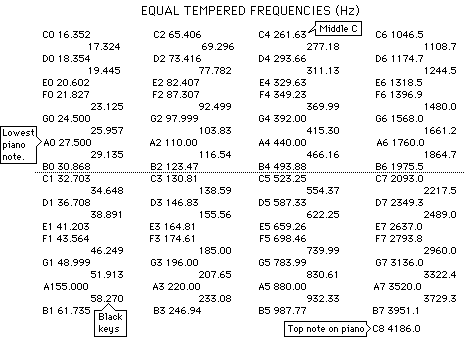 Equal tempered frequency list
