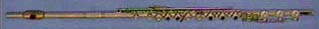This image shows the form of a U.S. flute up to the tuning joint. In Europe flutes are often constructed of wood; silver is commonly used in the United States.