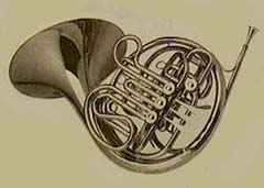 The French HornThough perhaps tracing its ancestry back to the use of animal horns by primitive man, the modern horn took a recognizable form in the 18th century. It was made with a flaring bell and one or two loops. It was made in the key of F with a length of about 12 ft and in a key of C with about 8ft of length. It became known in England about this time, and they called it the French horn. Starting in the 1710s, adding interchangeable extra crooks allowed a performer to change the length of the horn to alter its pitch. German hornist Anton Joseph Hampel discovered that hand stopping the horn allowed the player a few more notees. Modern French horns have three valves which lower the pitch a semitone, a tone, and three semitones (minor third). By the end of the 19th century, the horn in F had become standard. It is now typically combined with a shorter horn in B-flat to give a better high range. A fourth valve (thumb valve) is used to change between the F and the B-flat horn. One characteristic of the French horn is the existence of well defined resonances up to the 22nd or beyond, playable up to at least the 16th harmonic, compared to about 9 playable resonances for the trumpet and trombone. The hand closure is also unique; it increases the acoustic mass of the air column and lowers the resonances. It also allows the instrument to produce resonant peaks out to about 1500 Hz, compared to about 750 Hz without hand closure.
