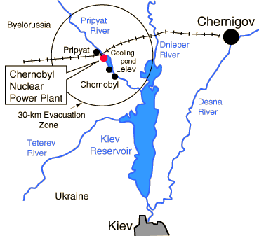 ChernobylOn April 26, 1986, a major explosion occurred at one of the four RBMK-1000 graphite-moderated power reactors at Chernobyl, 80 miles north of Kiev in USSR. |
