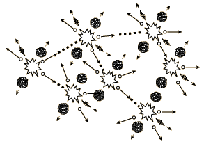 A fission chain reaction produces intermediate mass fragments which are highly radioactive and produce further energy by their radioactive decay. Some of them produce neutrons, called delayed neutrons, which contribute to the fission chain reaction.