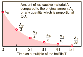 Radioactive Half-LifeThe radioactive half-life for a given radioisotope is the time for half the radioactive nuclei in any sample to undergo radioactive decay. After two half-lives, there will be one fourth the original sample, after three half-lives one eight the original sample, and so forth. ![]()