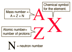 Nuclear NotationStandard nuclear notation shows the chemical symbol, the mass number and the atomic number of the isotope.