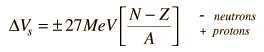 Nuclear Potential and the Shell ModelThe shell model of the nucleus presumes that a given nucleon moves in an effective attractive potential formed by all the other nucleons. If that is true, then the potential is probably roughly proportional to the nuclear density and therefore could be expressed in the form ![]() The parameters in this model of the potential have been evaluated to be approximately evaluated: ![]() Note that the radius above is larger than that given by the nuclear radius formula since it is related to the nuclear force which extends beyond the radius. Two other corrections are typically applied to more nearly fit observations. The first is called the symmetry energy, arising when there is an unequal number of protons and neutrons. Empirically, it is evaluated as ![]() The other correction for protons is the electrostatic repulsion energy, which takes the form ![]() The approximate potentials for neutrons and protons take the general form shown at left below. ![]() The additional correction which must be made is the spin-orbit interaction. It's general effect on the potential well is shown in the sketch above right. If the spin is opposite to the orbital angular momentum, the effective potential well is narrower, giving higher energy in the same manner as the square well potential. This can be seen in the spin-orbit splittings in the shell model level diagram.