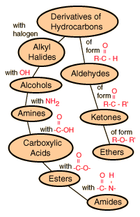 | Note that the carbonyl group is the functional group involved with several of the hydrocarbon derivatives shown above. Carbonyl wiki.