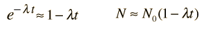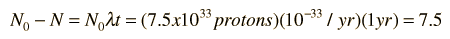 where l = 1/t = 10-33/ year is the probability that any given proton will decay in a year. Since the decay constant l is so small, the exponential can be represented by the first two terms of the exponential series.