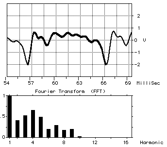1. For five periods in succession, perform the FFT and record the relative amplitudes of the first few harmonics - i.e., those which are greater than a few percent of the fundamental. Calculate average amplitudes and standard deviations for these harmonics and report these averages as your spectrum for this sound.
