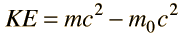 Relativistic Kinetic EnergyThe relativistic energy expression includes both rest mass energy and the kinetic energy of motion. The kinetic energy is then given by ![]() This is essentially defining the kinetic energy of a particle as the excess of the particle energy over its rest mass energy. For low velocities this expression approaches the non-relativistic kinetic energy expression.