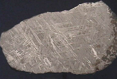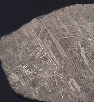 A closeup of the metal of the Brenham meteorite shows interesting striations which presumably show the symmetry of the crystal formation. This image is about actual size.