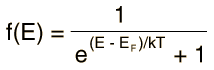 Fermi FunctionThe Fermi function f(E) gives the probability that a given available electron energy state will be occupied at a given temperature. The Fermi function comes from Fermi-Dirac statistics and has the form![]() The basic nature of this function dictates that at ordinary temperatures, most of the levels up to the Fermi level EF are filled, and relatively few electrons have energies above the Fermi level. The Fermi level is on the order of electron volts (e.g., 7 eV for copper), whereas the thermal energy kT is only about 0.026 eV at 300K. If you put those numbers into the Fermi function at ordinary temperatures, you find that its value is essentially 1 up to the Fermil level, and rapidly approaches zero above it. The illustration below shows the implications of the Fermi function for the electrical conductivity of a semiconductor. The band theory of solids gives the picture that there is a sizable gap between the Fermi level and the conduction band of the semiconductor. At higher temperatures, a larger fraction of the electrons can bridge this gap and participate in electrical conduction. ![]() Note that although the Fermi function has a finite value in the gap, there is no electron population at those energies (that's what you mean by a gap). The population depends upon the product of the Fermi function and the electron density of states. So in the gap there are no electrons because the density of states is zero. In the conduction band at 0K, there are no electrons even though there are plenty of available states, but the Fermi function is zero. At high temperatures, both the density of states and the Fermi function have finite values in the conduction band, so there is a finite conducting population.