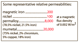 Relative PermeabilityThe magnetic constant μ0 = 4π x 10-7 T m/A is called the permeability of space. The permeabilities of most materials are very close to μ0 since most materials will be classified as either paramagnetic or diamagnetic. But in ferromagnetic materials the permeability may be very large and it is convenient to characterize the materials by a relative permeability.