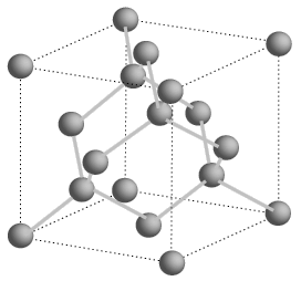 The above illustration shows the arrangement of the silicon atoms in a unit cell, with the numbers indicating the height of the atom above the base of the cube as a fraction of the cell dimension.