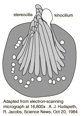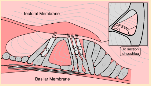 filled tympanic and vestibular canals. There are some 16,000 -20,000 of the hair cells distributed along the basilar membrane which follows the spiral of the cochlea.