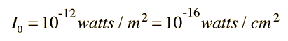 Sound IntensitySound intensity is defined as the sound power per unit area. The usual context is the measurement of sound intensity in the air at a listener's location. The basic units are watts/m2 or watts/cm2 . Many sound intensity measurements are made relative to a standard threshold of hearing intensity I0 : ![]() The most common approach to sound intensity measurement is to use the decibel scale: Decibels measure the ratio of a given intensity I to the threshold of hearing intensity , so that this threshold takes the value 0 decibels (0 dB). To assess sound loudness, as distinct from an objective intensity measurement, the sensitivity of the ear must be factored in. |