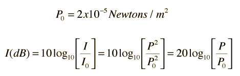 Sound PressureSince audible sound consists of pressure waves, one of the ways to quantify the sound is to state the amount of pressure variation relative to atmospheric pressure caused by the sound. Because of the great sensitivity of human hearing, the threshold of hearing corresponds to a pressure variation less than a billionth of atmospheric pressure. The standard threshold of hearing can be stated in terms of pressure and the sound intensity in decibels can be expressed in terms of the sound pressure: ![]() The pressure P here is to be understood as the amplitude of the pressure wave. The power carried by a traveling wave is proportional to the square of the amplitude. The factor of 20 comes from the fact that the logarithm of the square of a quantity is equal to 2 x the logarithm of the quantity. Since common microphones such as dynamic microphones produce a voltage which is proportional to the sound pressure, then changes in sound intensity incident on the microphone can be calculated from ![]() where V1 and V2 are the measured voltage amplitudes . |