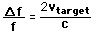 Doppler Shift, Moving TargetThe Doppler shift for relatively low velocity sources such as those encountered by police RADAR is given by ![]() but in this case there are two shifts: one because the wave incident on the moving car is Doppler shifted and an additional shift because the reflection is from a moving object. The frequency shift of the reflected wave received at the source of the wave is ![]() This shift is detected by measuring the beat frequency with the transmitted wave. ![]()