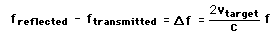 Beat Frequency and SpeedThe beat frequency between a microwave transmitted signal and a reflected signal off a moving object is ![]() where the target velocity is taken as positive if the target if approaching the transmitter. Police RADAR uses this method for measurement of auto speed. ![]()