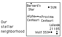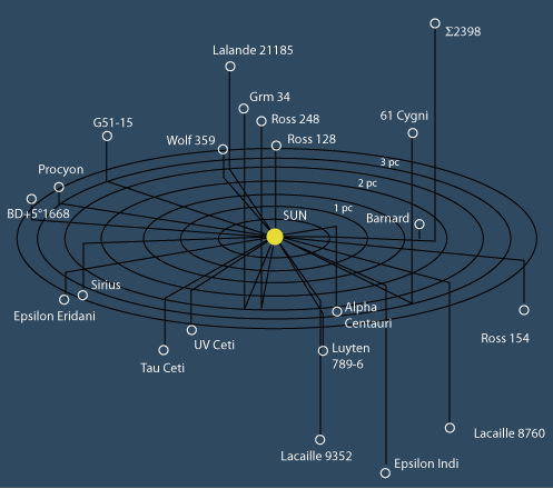 This illustration is patterned after Chaisson and McMillan, Chapter 17, where they identify the closest stellar neighbors of the Sun.